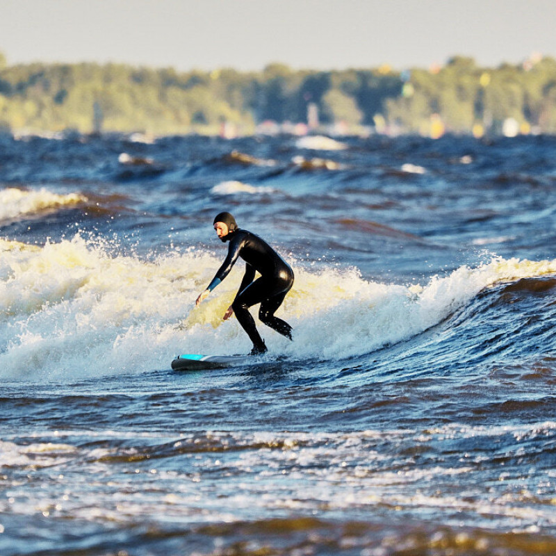 К сожалению, подходящая погода, чтобы покататься на серфе в СПб, бывает нечасто. Иногда нужного прогноза приходится ждать больше месяца. И волну ловят достаточно долго. Так что терпение – это неотъемлемый атрибут хорошего серфера. Начинаем тренироваться сразу. Обычно хорошие условия возникают под влиянием циклона, который приносит ветер, холод и пасмурную погоду. Конечно, бывают и исключения. Однако лучше настраиваться на то, что позагорать на солнышке после тренировки не получится.